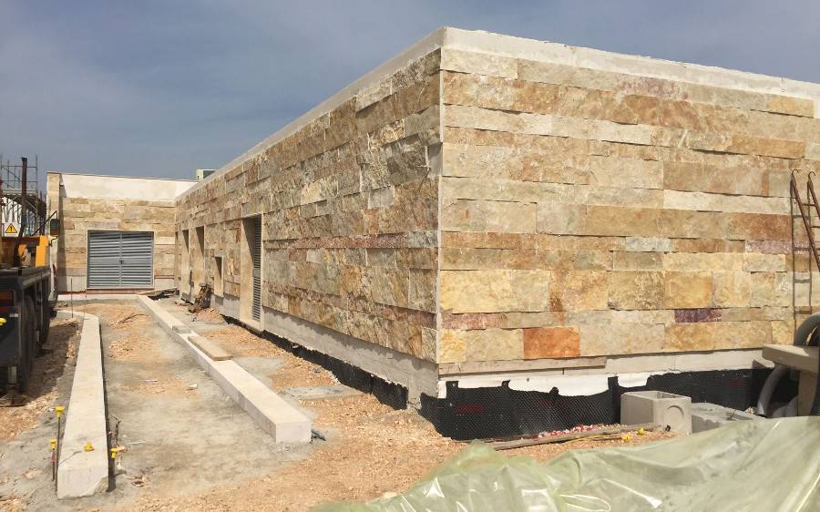 The development of the car park is based on a flat surface, leavingthe current orographic layout of the terrain unchanged; its perimeter is entirely fenced and equipped with an automated gate; furthermore, in order to minimize environ- mental impact and provide the driveway surface with an aesthetically distinct feature, the paving of the parking lot is achieved by exclusively paving the lanes (6m wide) and the aprons, while the parking bays is composed of self-anchoring blocks of high-strength vibro-compressed concrete, designed for “erbabloc”-style driveways and greenery areas.