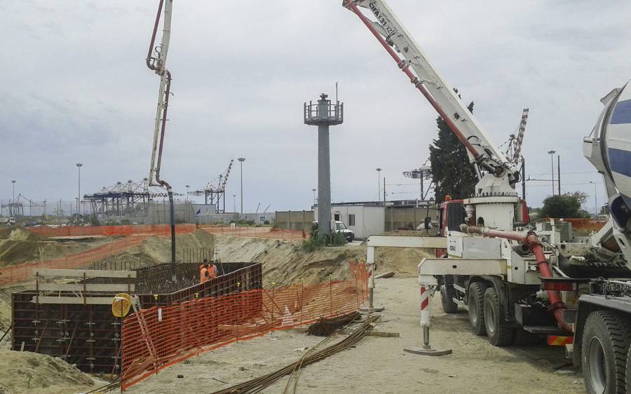 To complete the operations planned for the main axis, a new configuration of the railway shunting rod has been added in the southeast ern area of the MCT aprons. Moreover, the Port Authority also intends to improve the so-called “backdock” traffic circulation, which develops along the wave barrier protecting the inner basin of the Port. This is an intervention of totalling a development of about 3.000m, divided into three sections measuring 195m respectively: a 1.200m long connection to the existing traffic segment in which the longitudinal profile is to be brought to compliance standards; an intermediate section that borders the wave barrier wall, for which flexible paving (binder + wearing course) is planned to be laid on the underlying existing concrete layer, and also includes three rods of connection with the existing road network(facing the internal basin) for a total development of about 400m; a final stretchof about 1.600m where it is estimated that the recently built flooring will only require the paving of the wearing course.