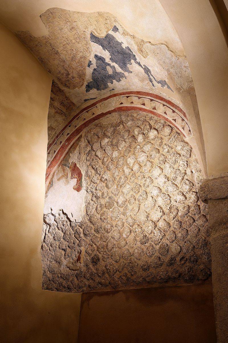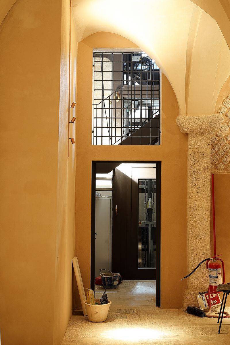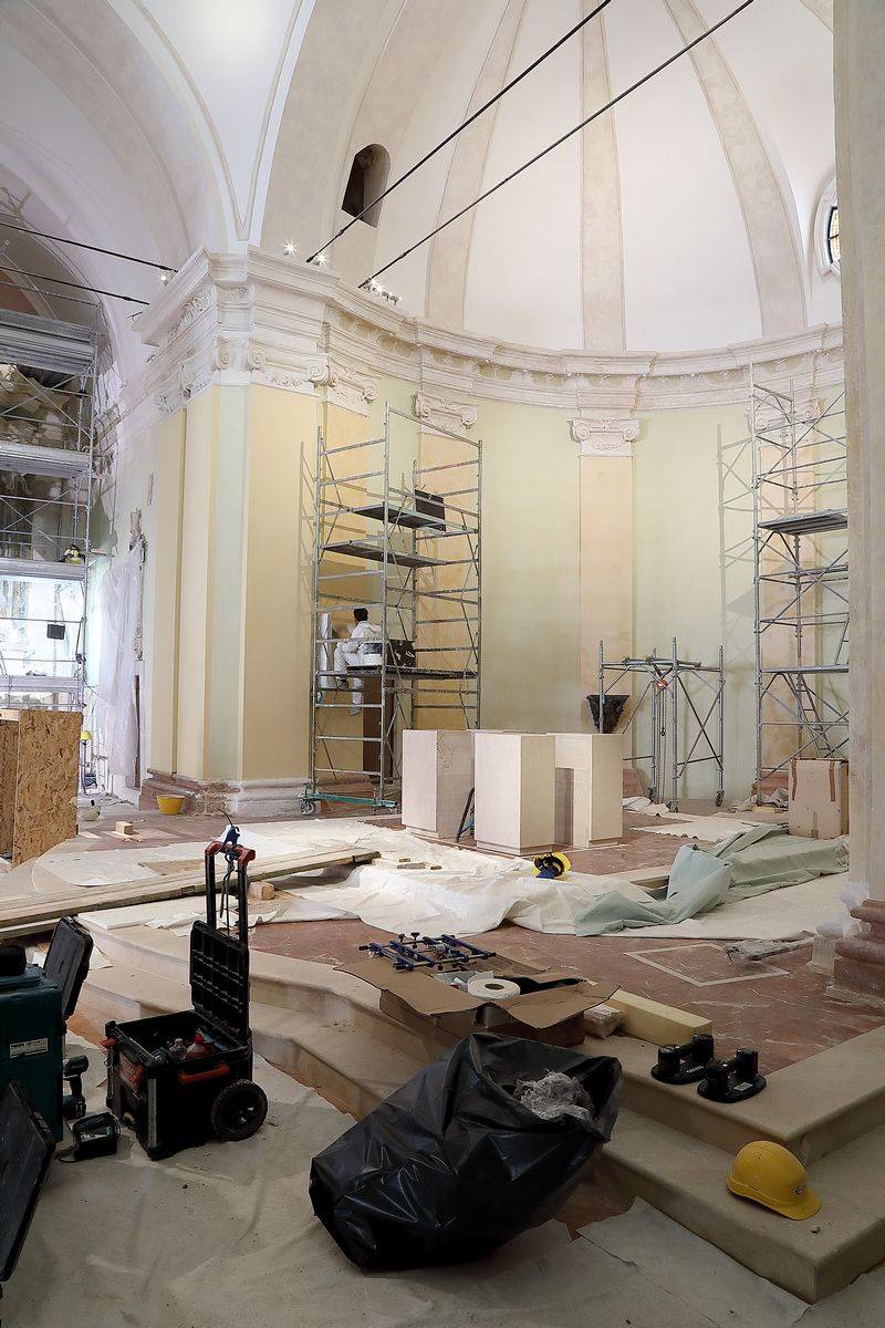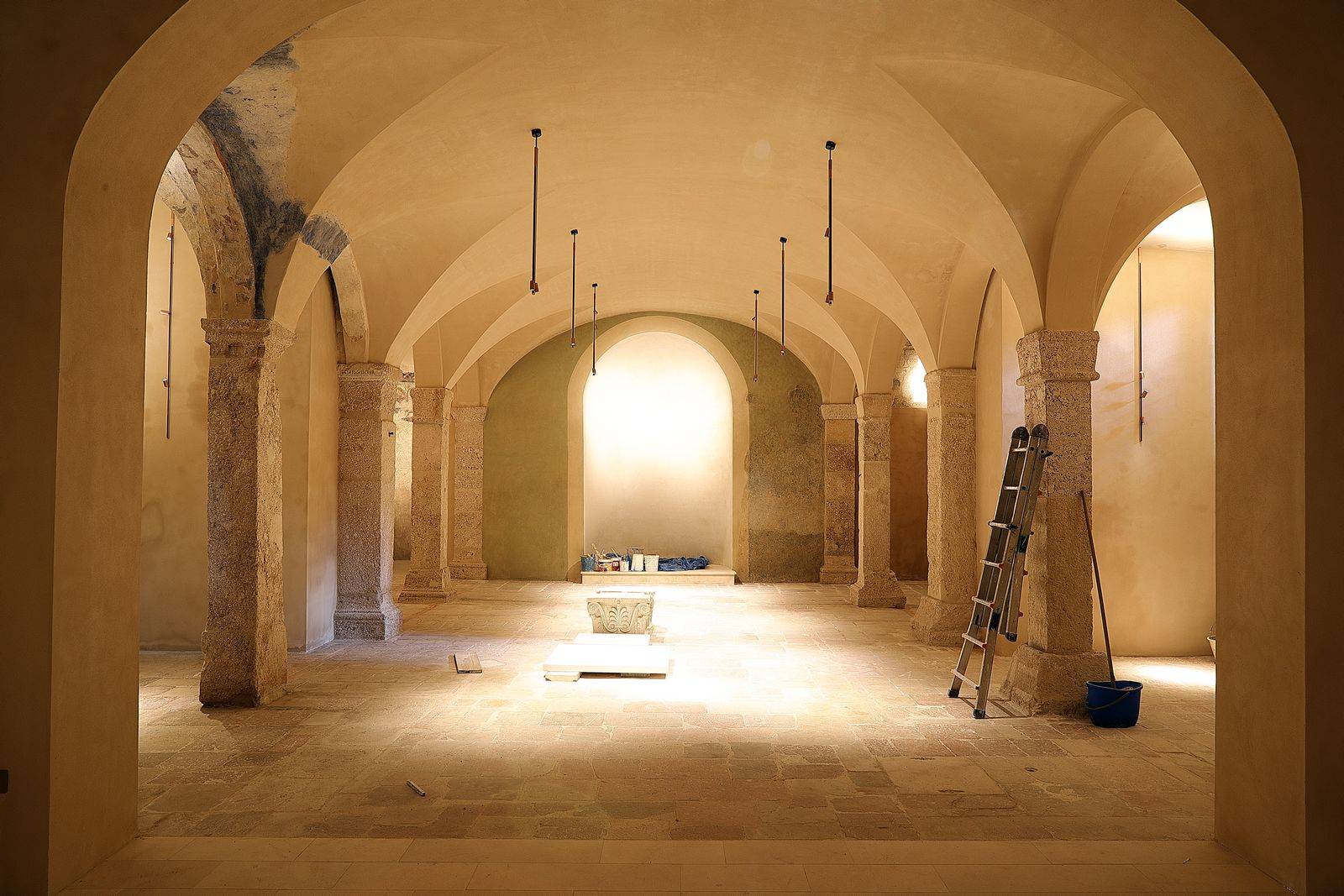 In the crypt, the restoration of the original stone elements has been carried out, along with the integration of sections that have been lost after the collapses. Plans included the complete removal of the existing stone floor of the nave, along with the their replacement with a new flooring in handmade terracotta, characterized by the typical yellow-pink colours of the area and a polished finish.