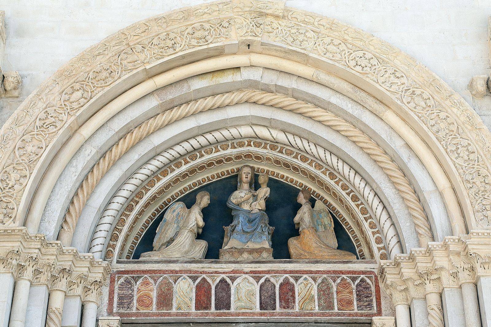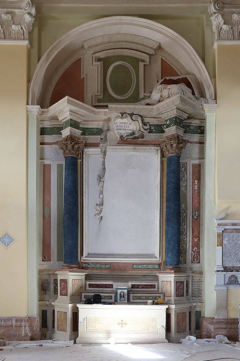 All lost elements have been recreated from scratch, in line with the existing ones. The windows were characterized by artistic stained-glass patterns, which have been partially recovered after the seismic events, in the areas of the apse and transept.