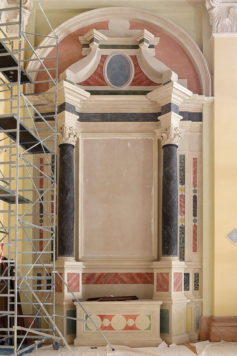 Among the most important interventions, reconstruction of the altars stands out: the altars were made with stucco decorations on a wall support.