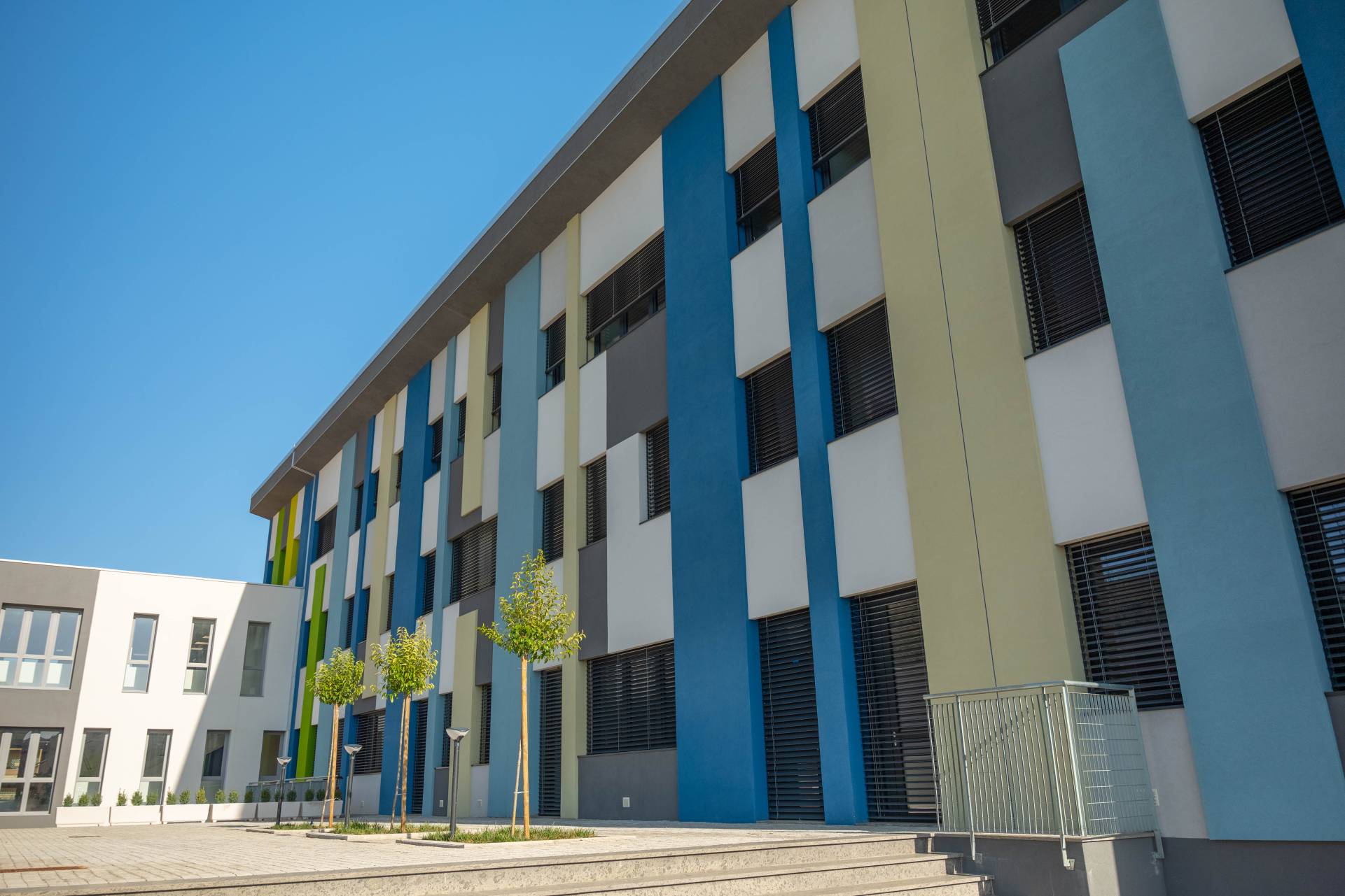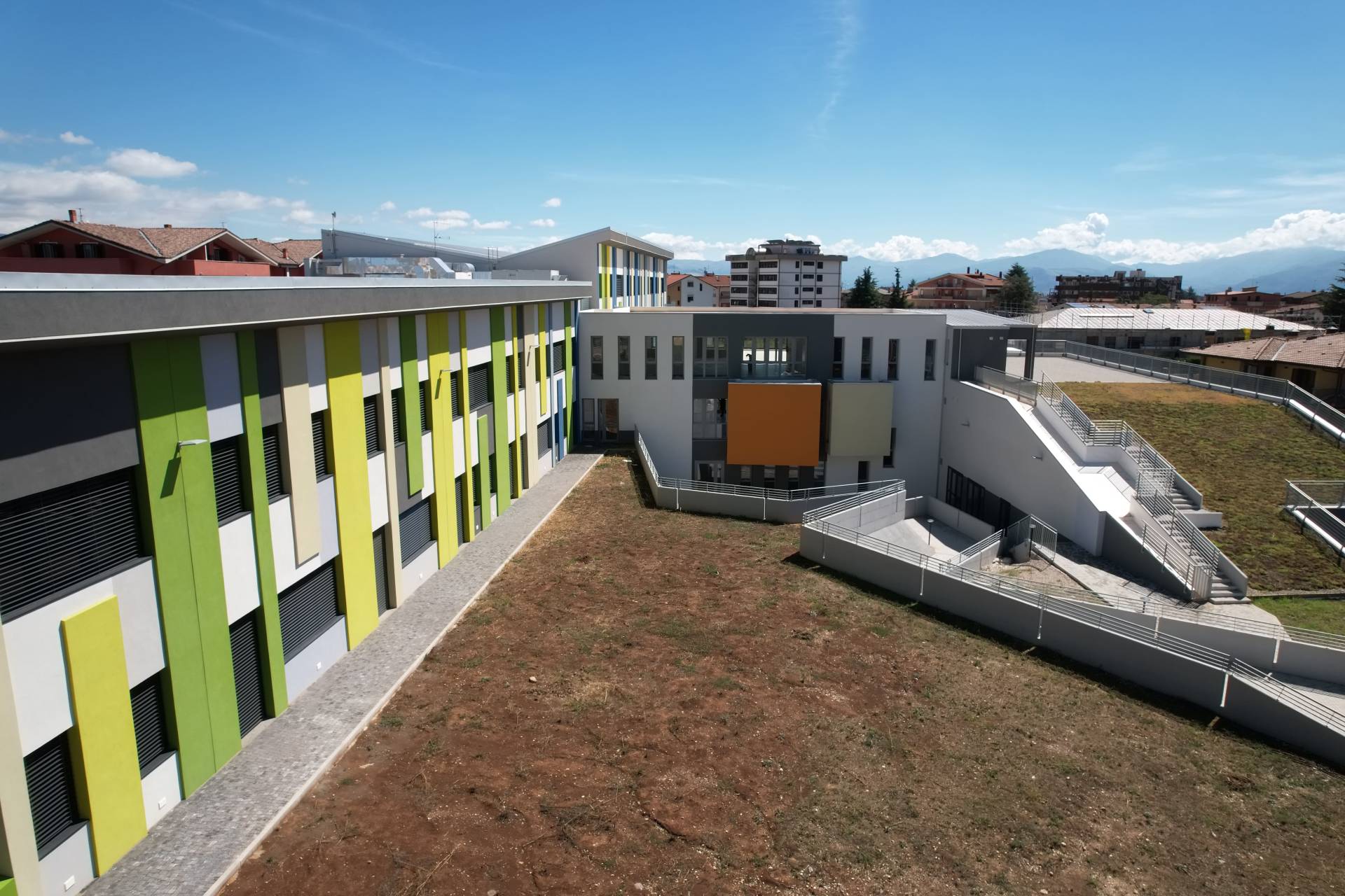 [...]Scopri di piùA seguito di una ricognizione effettuata dopo il sisma che colpì L’Aquila nel 2009 emerse chiaramente che gli edifici ospitanti la scuola “Corradini” e “Fermi”, nel comune abruzzese di Avezzano, non rispondevano più agli standard di funzionalità e sicurezza vigenti. Il successivo piano di edilizia scolastica ha disposto la realizzazione di un nuovo polo scolastico per 675 studenti, composto da 2 blocchi per la didattica: uno ospitante 250 bambini della scuola elementare “Camillo Corradini”; l’altro destinato ai 375 studenti della scuola media “Enrico Fermi”. Il progetto sorge all’interno di un’area trapezoidale di circa 11.726 mq precedentemente adibita a deposito mezzi.