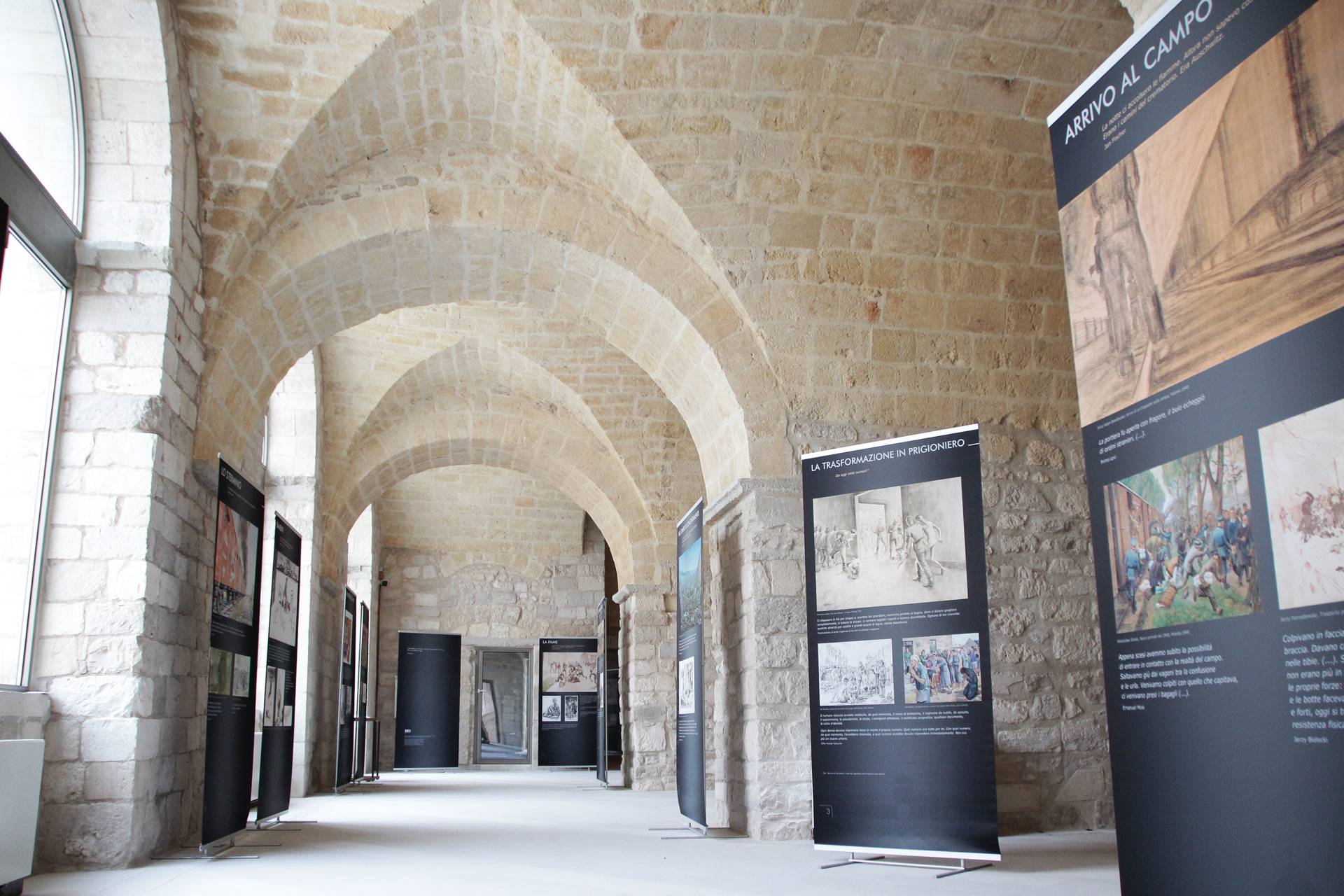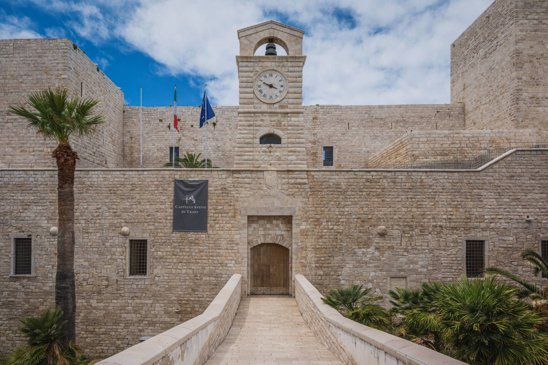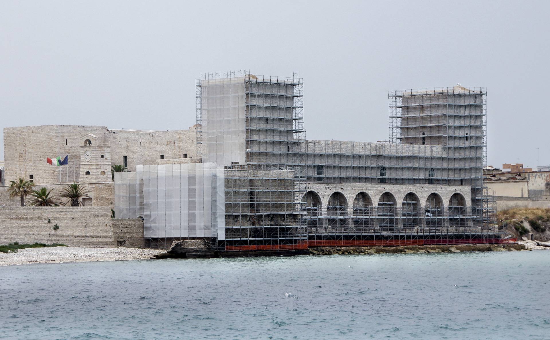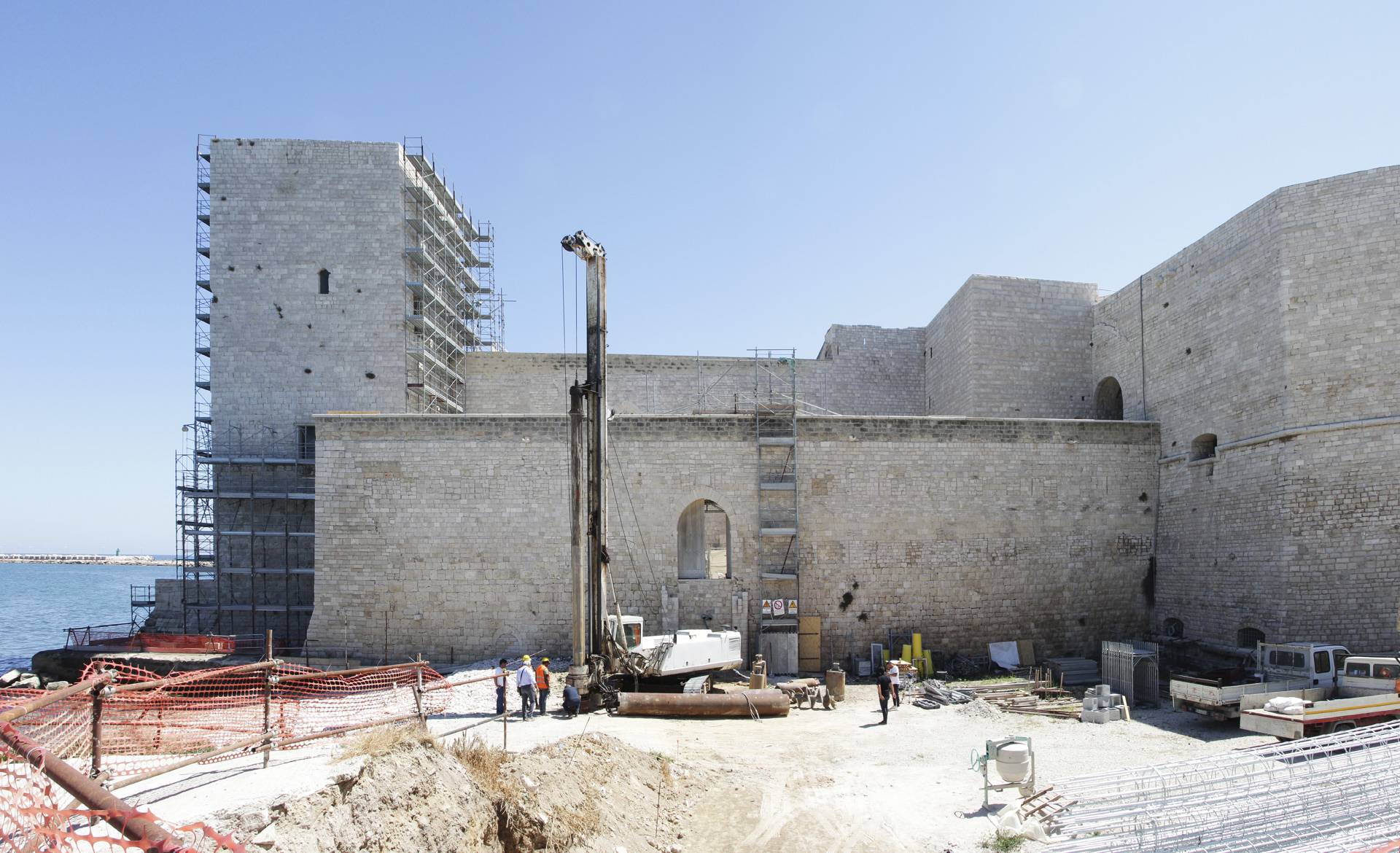 [...]Scopri di piùIl Castello Svevo di Trani sorge in riva al mare, a breve distanza dalla Cattedrale romanica e nel 1936 è stato dichiarato Monumento Nazionale con Regio Decreto. Gli interventi di cui è stato oggetto mirano alla sua valorizzazione e al miglioramento della sua fruibilità nell’ottica di aumentarne l’attrattività turistica. Una prima fase di consolidamento e ripristino delle finiture ha reso accessibili al pubblico tutti quegli spazi una volta impraticabili. Sono state ritinteggiate con pittura le pareti precedentemente rivestite ad intonaco, rimossi i depositi superficiali, sostituite le porzioni di pavimentazione ammalorate, colmate le lacune delle parti mancanti ed eseguita la pulitura. I paramenti interni, rivestiti in materiale lapideo, mostravano un discreto stato di degrado, pertanto su di essi è stata effettuata una pulitura meccanica, completata con un trattamento protettivo sul materiale lapideo. Le pareti non rivestite sono state ritinteggiate, così come anche le volte, con una preventiva rimozione di corpi estranei eseguita con spazzolatura e pulitura.