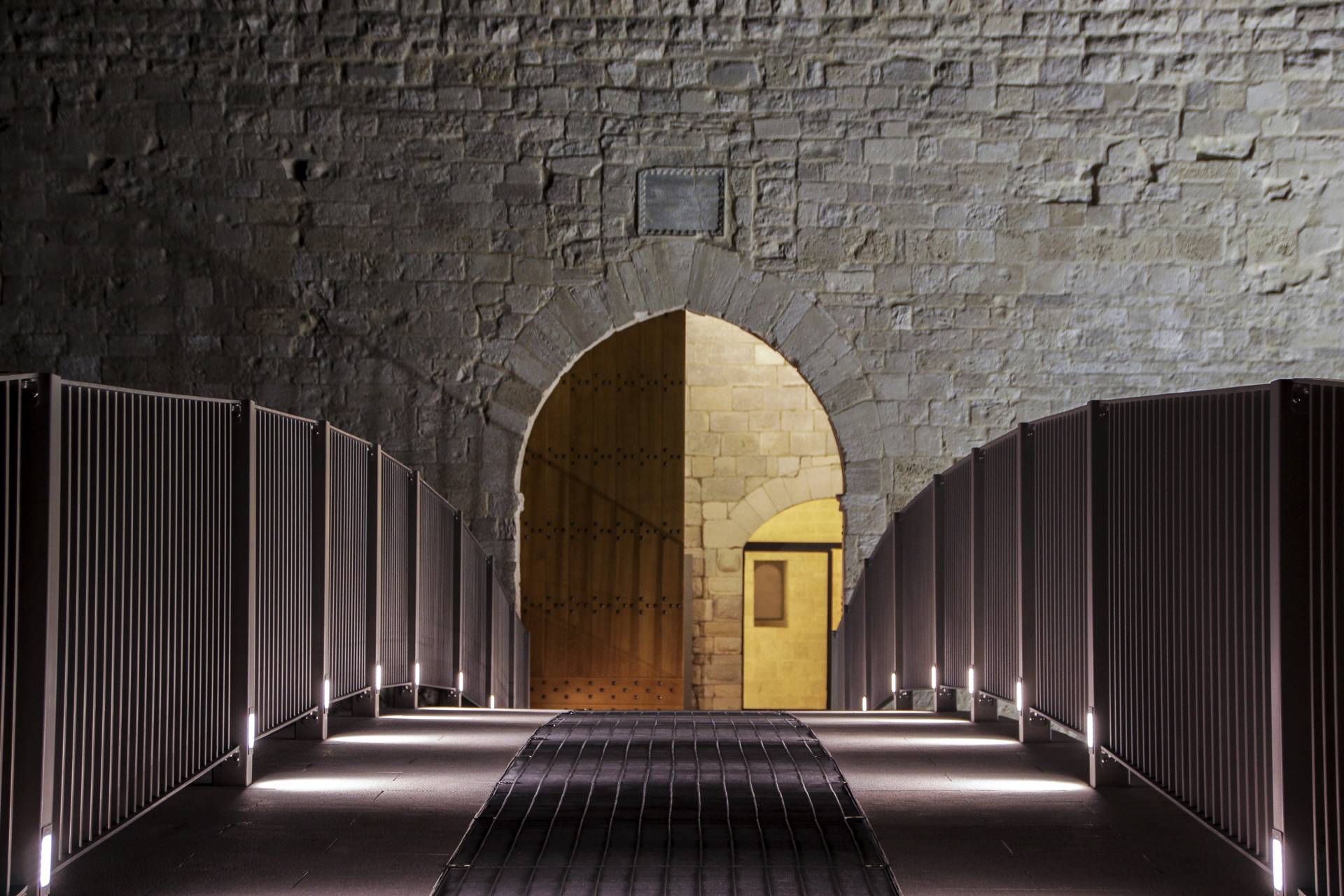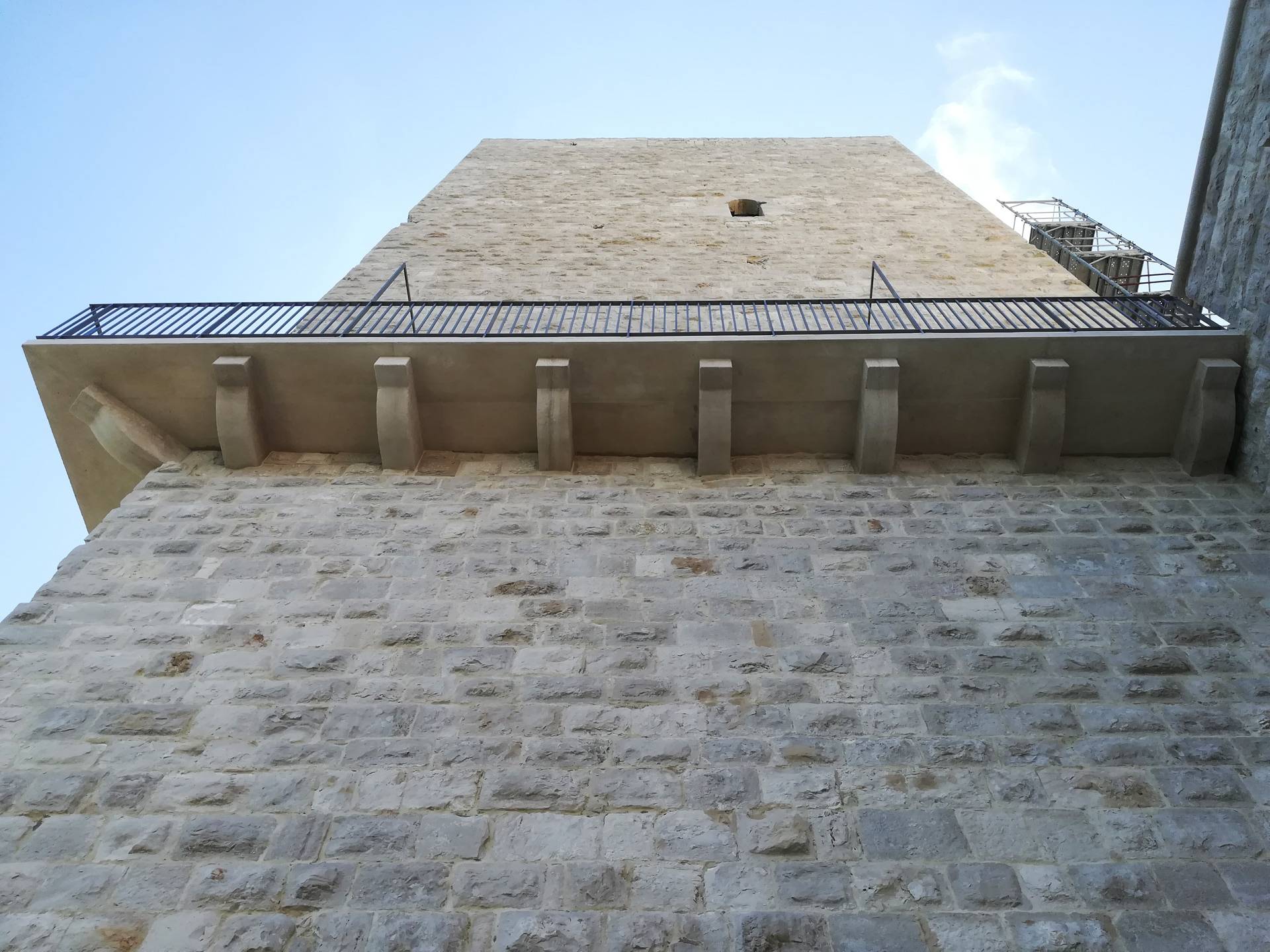 One of the most important interventions is certainly the restructuring of all external paths: in fact, the north-west side of the second floor required restoration works on the external walkway, as it lacked structural integrity, railings and parapets. Specifically, a staircase consisting of four risers was demolished to make room for a single pedestrian ramp, with a total length of about 15 meters, bordered on both sides by stainless steel railings. Also in the spirit of accessibility improvement of the Castle, works were carried out to make the accesses to the roofs safe to use: these accesses could formerly be reached by stairs that lacked handrails. The following step consisted in adding said handrails, also recovering an existing, albeit neglected, stone staircase and adding two new stainless steel staircases.