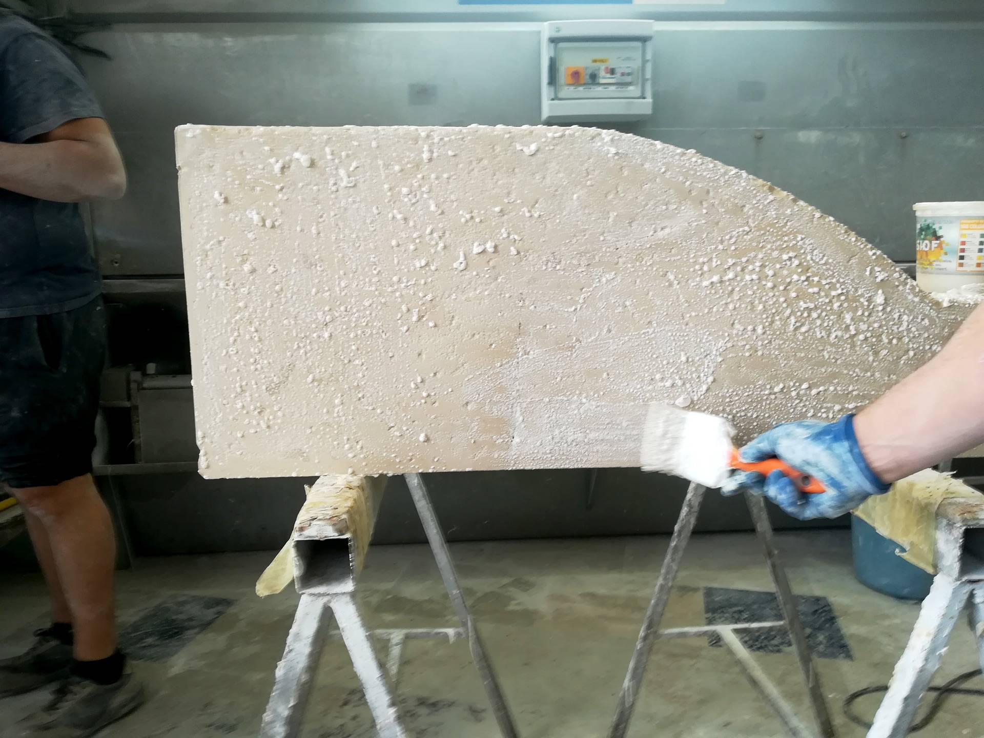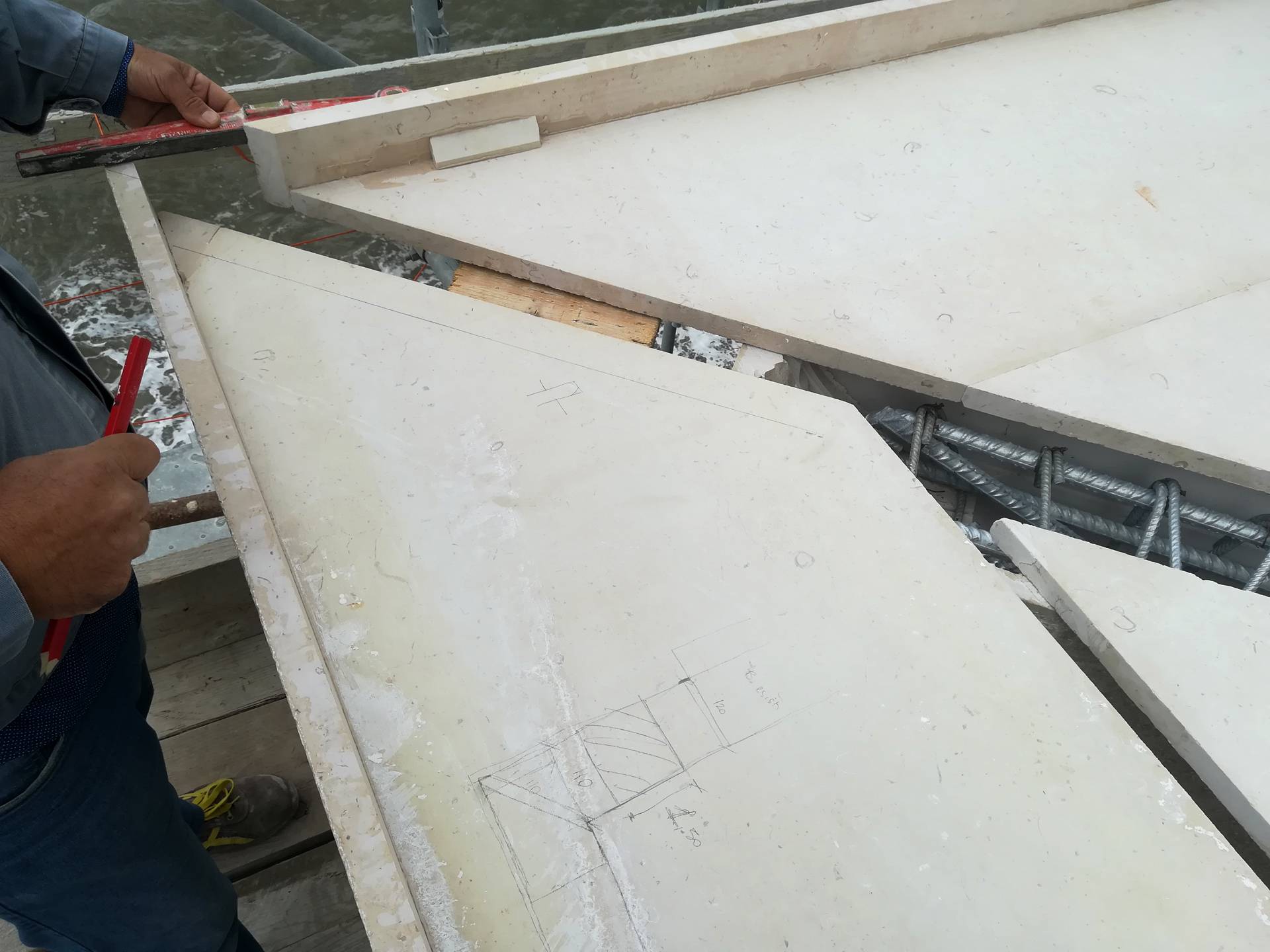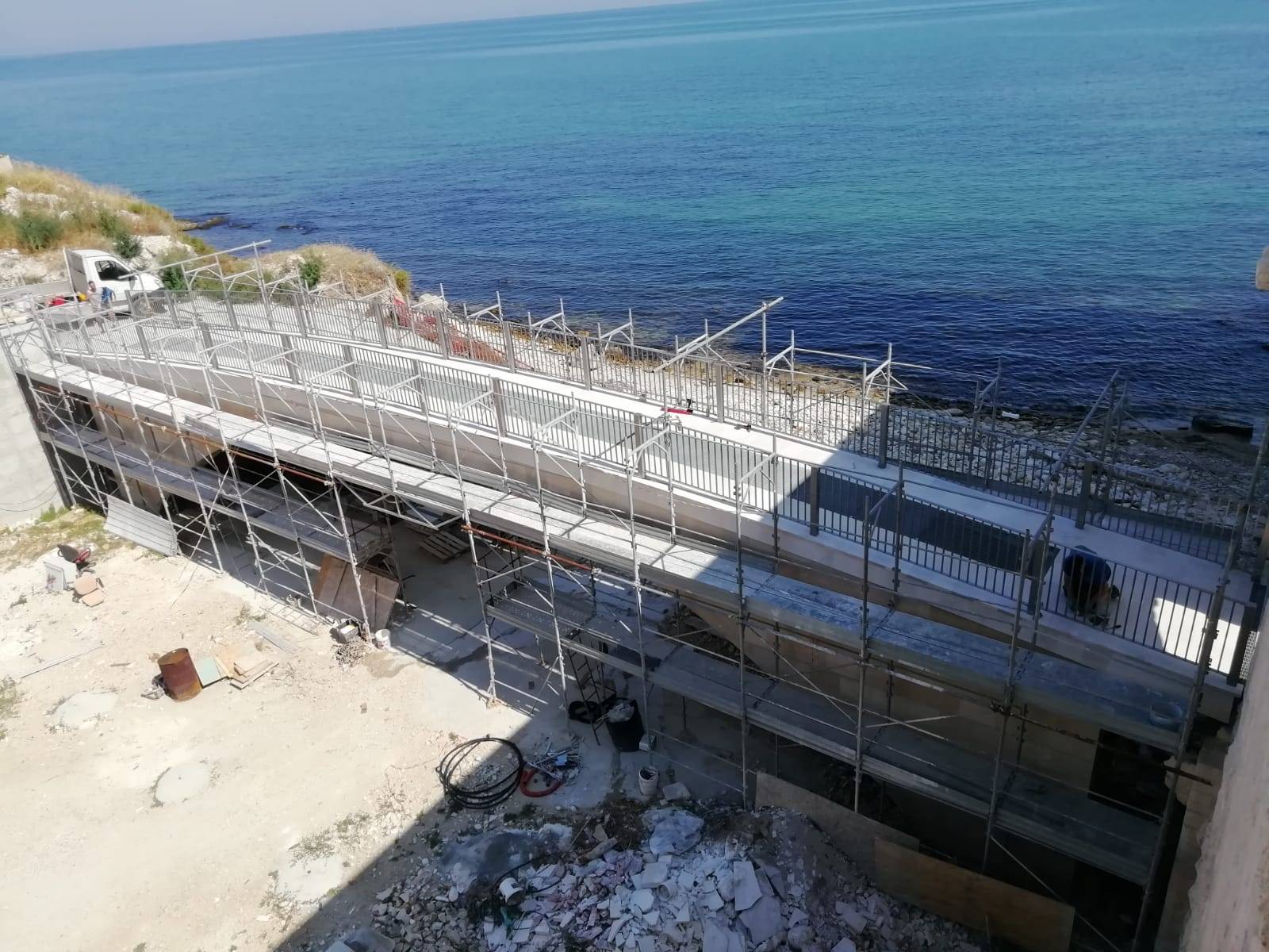 Uno degli interventi più rilevanti è sicuramente la ridefinizione dei percorsi esterni, difatti al primo piano, sul lato nord-ovest è stato necessario provvedere con il ripristino del camminamento esterno, in quanto risultava essere privo di continuità e sprovvisto di ringhiere e parapetti. Nello specifico, è stata demolita una scala composta da quattro alzate per dar spazio ad un’unica rampa pedonale lunga circa 15 metri, perimetrata su entrambi i lati da ringhiera in acciaio inox.