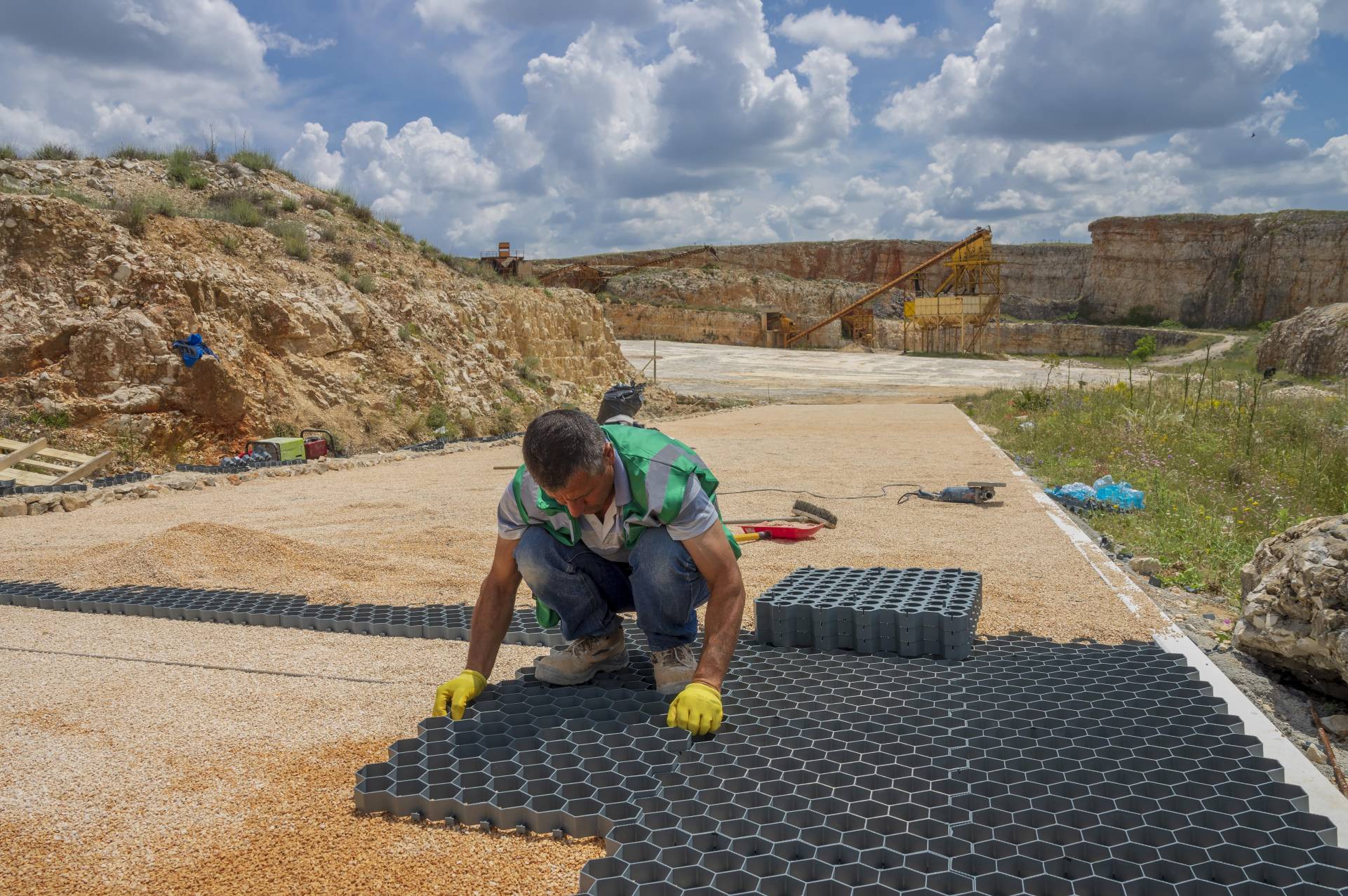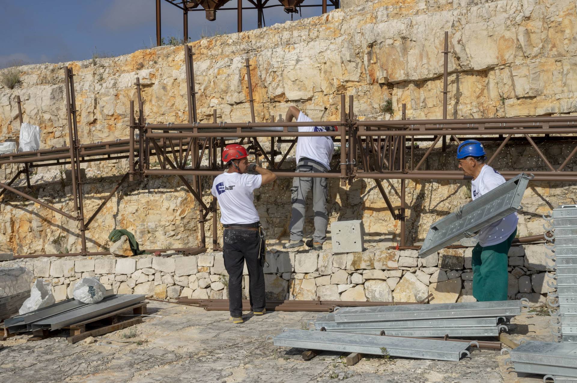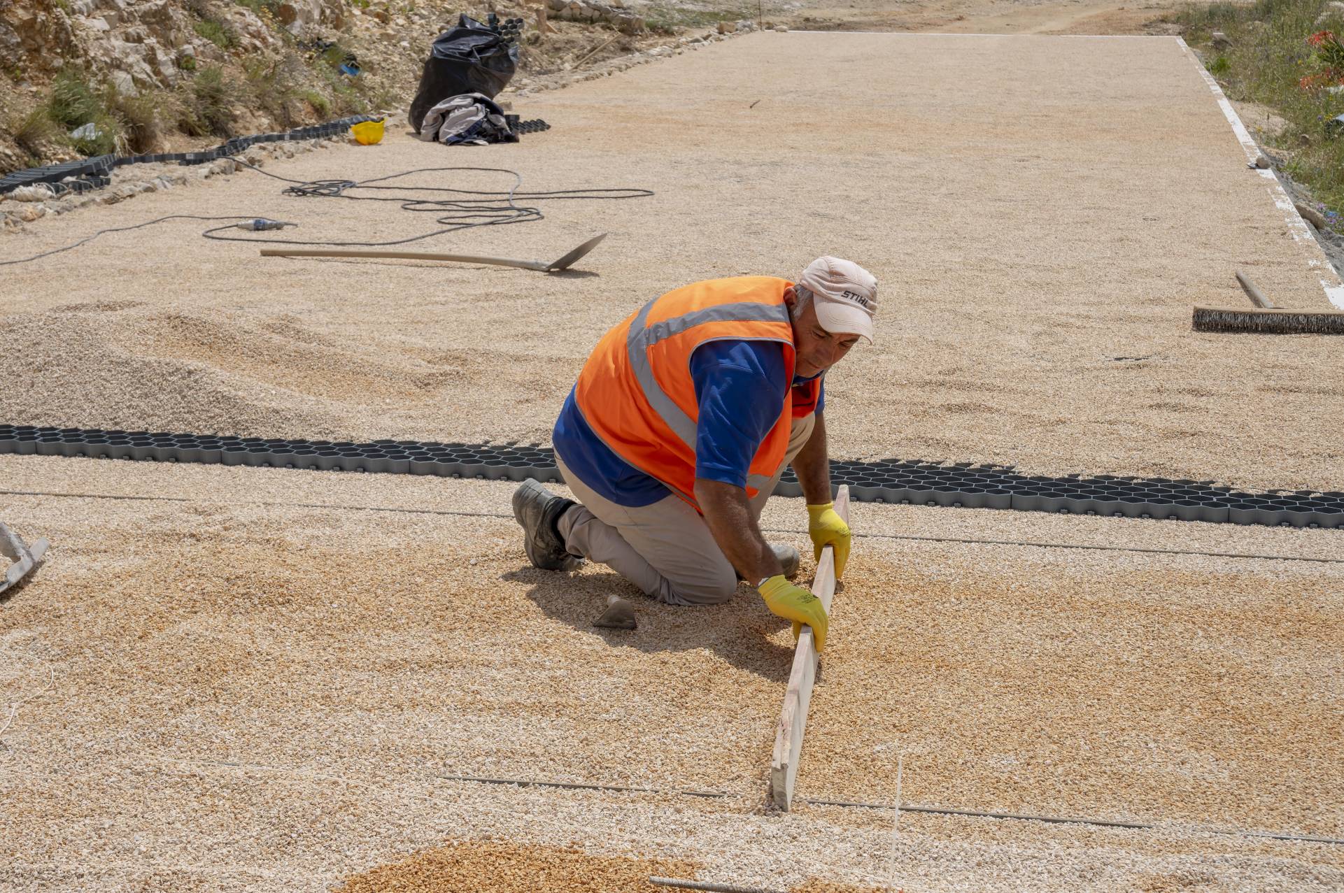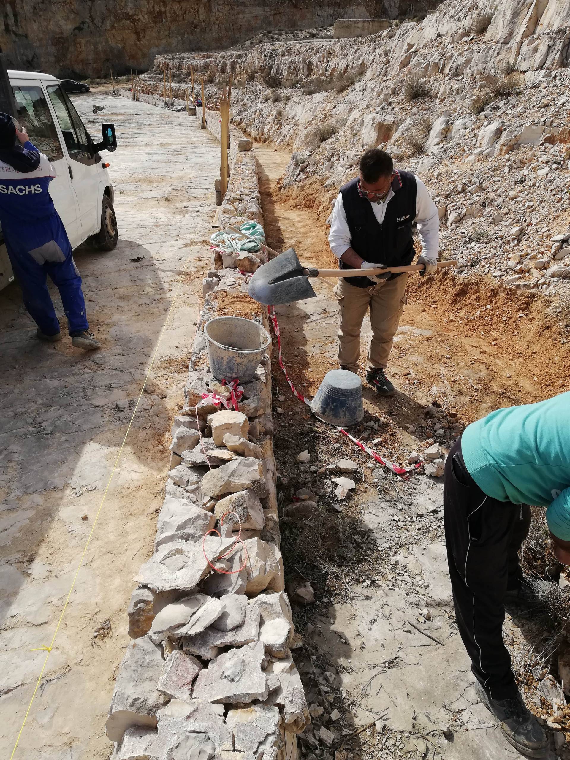 Infine, gli interventi eseguiti all’interno della cava riguardano la realizzazione di una pavimentazione tipo prato carrabile in materiale plastico alveolare, dall’attuale ingresso in cava fino al piano della stessa; la posa in opera di una rampa di collegamento tra la pavimentazione precedente e uno dei livelli orizzontali dei fronti di cava, per poter permettere al pubblico di osservare le operazioni in corso; la fornitura e posa in opera di cartelli informativi delle attività in corso di svolgimento – durante l’esecuzione dei lavori -e dei risultati conclusivi. Tali interventi sono stati eseguiti per migliorare e facilitare la fruibilità della cava al pubblico.