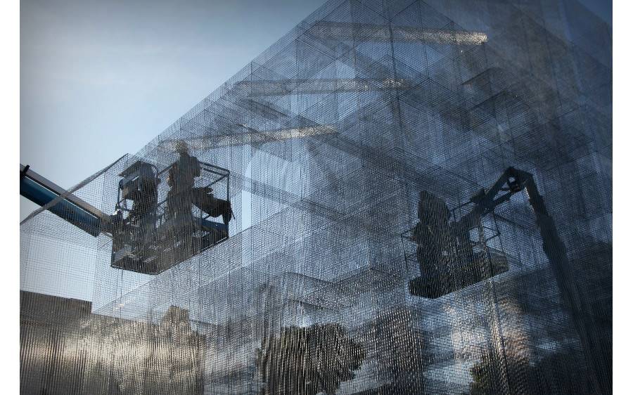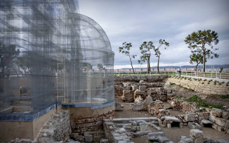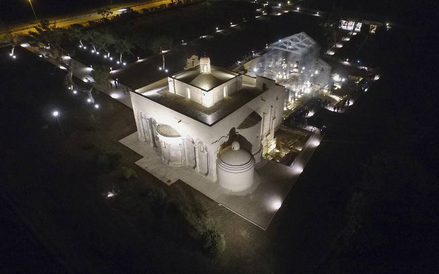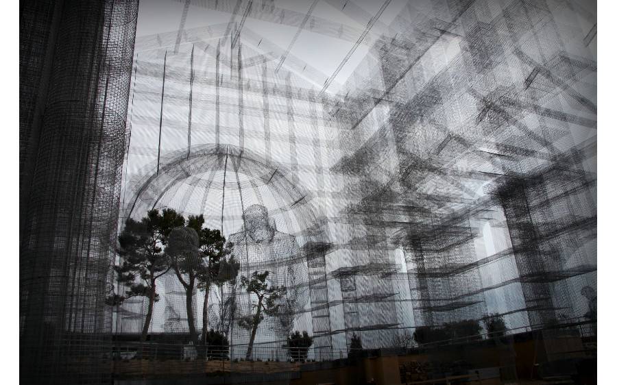 Attraverso il ricorso all’estro creativo dell’artista Edoardo Tresoldi, che ha realizzato una istallazione permanente in rete metallica, si è ottenuto il risultato di suggerire terza dimensione e volumetrie, rendendo l’impianto della basilica comprensibile al vasto pubblico e riducendo l’impatto tra la “nuova” basilica e la prospiciente chiesa romanica.