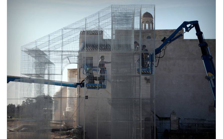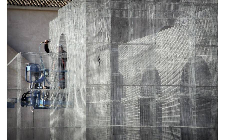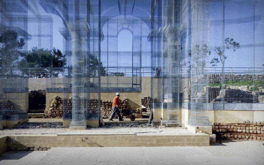L’intervento è stato realizzato su superfici di sacrificio poste al di sopra delle strutture antiche che hanno assolto a funzione protettiva delle creste murarie e consentito che l’ancoraggio dell’installazione non interferisse in alcun modo con il monumento archeologico, assicurando al contempo la reversibilità dell’intervento.