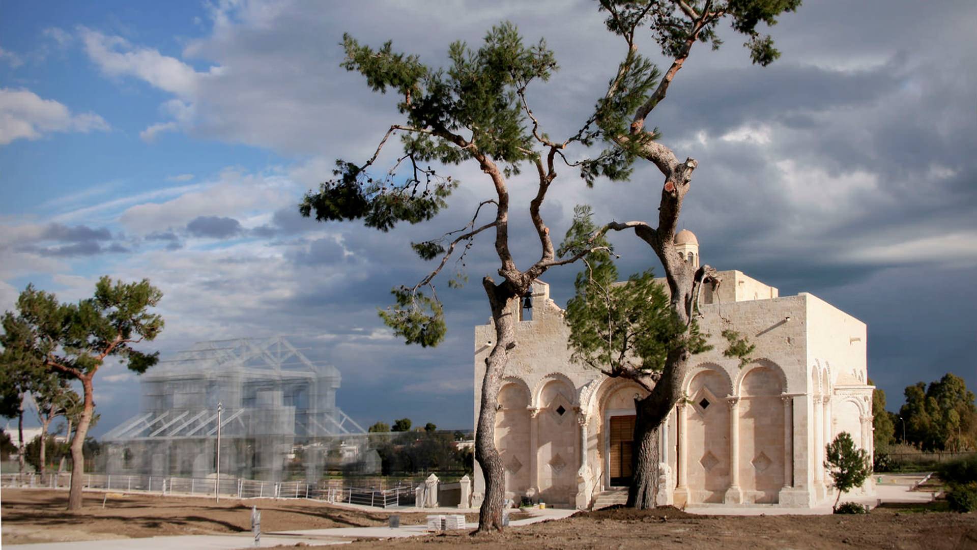 Si è ritenuto di conferire un particolare contenuto culturale all’intervento e di valorizzazione del sito attraverso la ricostruzione dei volumi della chiesa, naturalmente definiti nell’articolazione planimetrica e nelle dimensioni sulla base di criteri rigorosamente filologici.